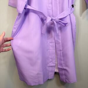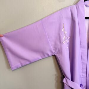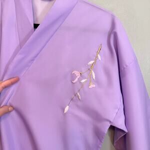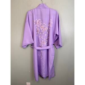 Kimono Robe Womens Large Purple Floral Embroidered Open Front Tie Waist Japanese