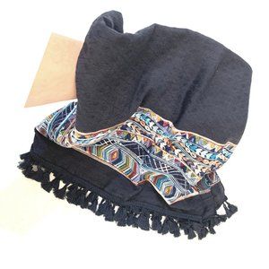 Casual Embroidered Geometric Tassel Kimono 80% Polyester 20% Cotton With Armholes.