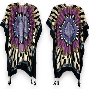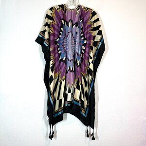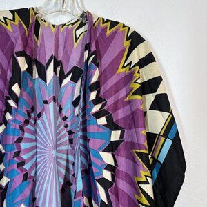 Kimono Shawl Cover Up Purple Black Beachy Abstract Hippie One Size