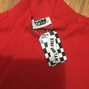 Lazy Oaf style Kina and tam stretch cotton turtleneck embroidered sweater with heart shaped pockets size 2xl brand new roomy fit
