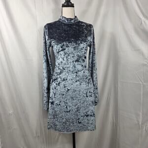 Kinchi Blue 90s Velvet Dress Women Medium Blue Crushed Long Sleeve Mock Neck