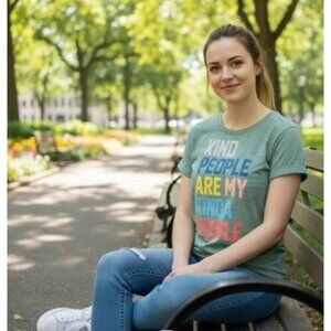 Kind People Are My Kinda People Womens Tee M By Truly Kind 100% Cotton Green Sho