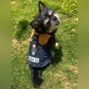 Meet “Kinda Sus”, a one-of-a-kind, custom dog denim jacket made for pups with big personality and even bigger style. Once it's gone, it’s gone—no restocks, no duplicates.