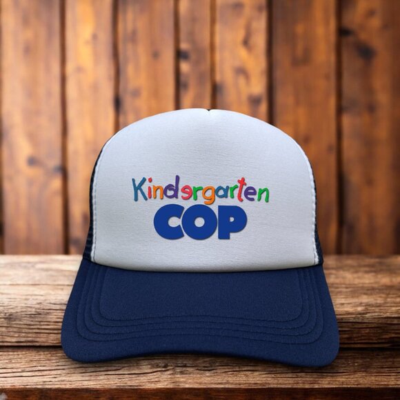 Kindergarten Cop Mens Trucker Hat Navy Arnold Schwarzenegger 90s Cult Comedy Cap