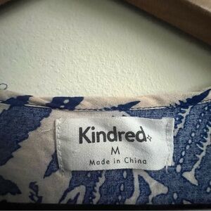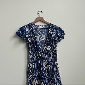 Kindred Anthropologie Blue Fern Leaf Maxi Dress Boho Resortwear Tropical Medium