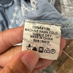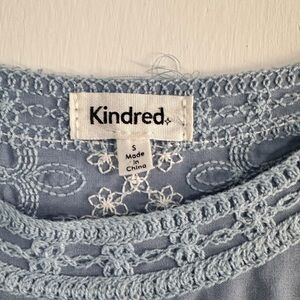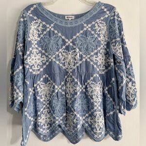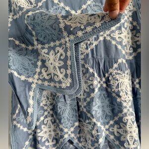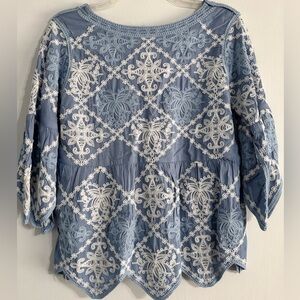 Kindred Anthropologie Blue White Embroidered Peplum Top Boho Artsy