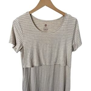 Kindred Bravely Bamboo Nursing Friendly Striped Tan Mini Dress w/ Pockets Medium