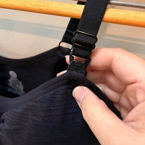 This nursing bra tank top is designed for breastfeeding mothers. It features adjustable straps for a customizable fit and is crafted from a blend of organic bamboo and spandex, providing comfort and flexibility. Ideal for both casual and professional settings, it complements a variety of wardrobes.