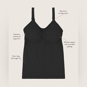 This super soft, stretchy, and supportive tank is the perfect top to take you from your first trimester through postpartum, nursing, and beyond. With seamless construction and a built-in bra with removable padding (no need for a separate nursing bra!), this luxurious maternity and nursing tank top provides a smooth silhouette for pregnant and breastfeeding moms. The extra-long, hip-length cut offers ample coverage for your baby bump or postpartum tummy. Easy clip-down cups allow for quick access for nursing or skin-to-skin contact, making it ideal to wear day or night.