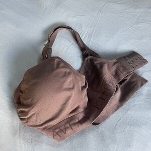 A seamless, full-coverage bra designed for everyday nursing. Still in great shape. Includes pads and extender attachment for back clasps