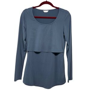 Kindred Bravely Slate Blue Maternity Post Partum Nursing Long Sleeve Stretch Pullover Top Medium