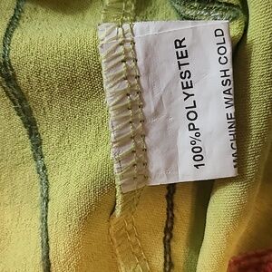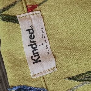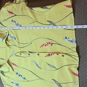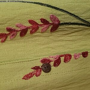 Short Ruffle Sleeves, Button Down Blouse, Loose Fit Body, Green With Floral Embroidery in Blue, Red, Pink, and Green, Size Large.