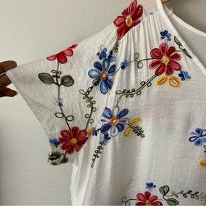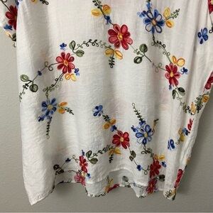 Kindred Embroidered Floral Top White Plus 2X V-Neck Cottagecore Boho Lightweight