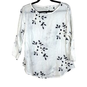 Kindred White Navy Floral Embroidered Gauzy 3/4 Sleeve Blouse Size XL
