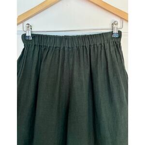 Irish linen is THE best. These trousers are made of a beautiful dark green Irish linen. They feature an elastic waist, pockets, and ankle cuffs. In excellent condition (just a bit of wear on garment tag)! Originally $375