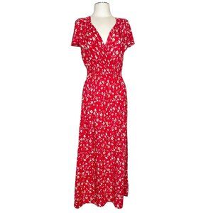 Kindred red floral wrap top flutter sleeve maxi dress size S