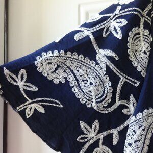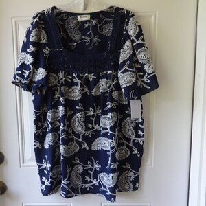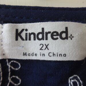 Kindred women's top size 2X, blue with white embroidered paisley design soft NWT