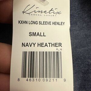 Kinetix Mens Small Navy Heather Long Sleeve Henley Shirt