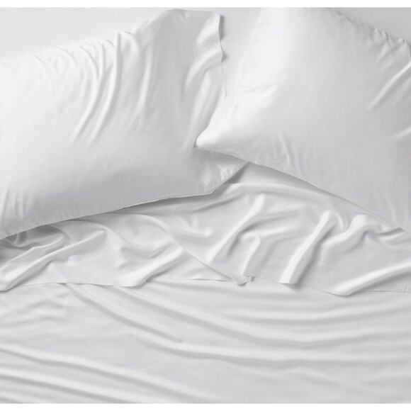 This listing is for a brand new Casaluna King 400 Thread Count Rayon from Bamboo Sheet Set in White.