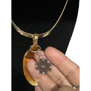 The King Arthur’s Gold Electroplated Artisan Spoon Pendant with vintage Best Brand Silver Cross Charm and Gold Choker Necklace is a unique, handcrafted jewelry piece. This elegant and stylish necklace is a perfect blend of medieval symbolism and modern fashion.