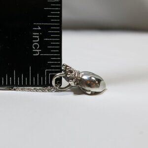 This is the first version of the 3D Heart Pendant that King Baby made. The back has a raised logo "ribbon" that has not been used on subsequent versions. It comes on their Micro Rolo chain necklace with King Baby logo on the clasp. The pendant itself is not the Micro heart, it is the larger one, check my photos of it on a ruler for reference.
