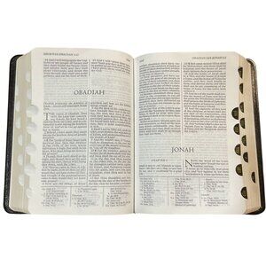 This King James Version of The Holy Bible, published by The Church of Jesus Christ of Latter-Day Saints, includes both the Old and New Testaments. It features authorized text with explanatory notes and cross-references to the standard works of the church. The leather cover and gold-edged pages with thumb indexing add a touch of elegance.