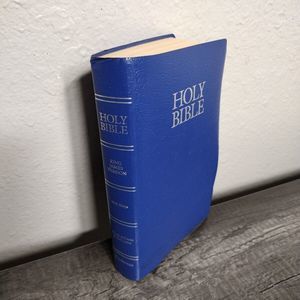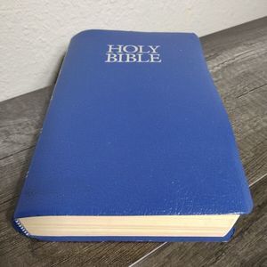 This beautiful blue faux leather bound Bible features the New King James Version with giant print and red letter edition. It is a collector's edition published by Zondervan in 1994. The Bible measures 21 inches in length, 14 inches in height, and 4 inches in width.