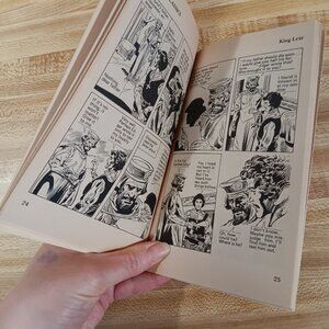 The product is a vintage 1984 black and white pocket classics comic paperback of "King Lear" by William Shakespeare. Published by Academic Industries, this illustrated edition is part of the Classics genre and features action, adventure, mystery, and other topics. This collectible book is perfect for adults and is a great addition to any Shakespeare or classic literature enthusiast's collection.