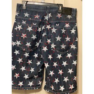 King Maker Custom Men's Jean Shorts 36x13 Straight Fit Dark Wash White Stars Red