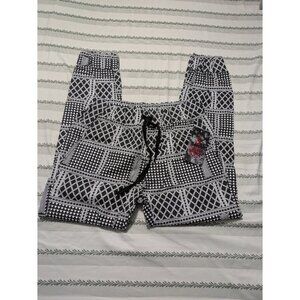 King Maker Mens Jogger Pants Drawstring Aztec Black White Pattern Size Large Y2K