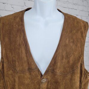 King Ranch Brown Genuine Suede Leather Western Lined Buttoned Vest Size Large L