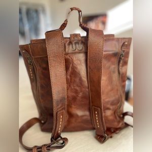 Amazing full grain leather tassel backpack from King Saddle Ranch. Magnetic closure, fully lined, interior pockets. Cool zippered back pocket that opens on both sides into one large pocket. Amazing dimensions on the leather.