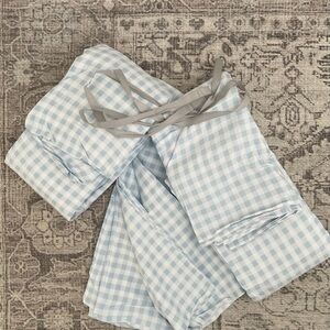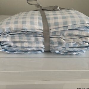 NEW Light blue and white gingham King Sheet Set. "King Sheet Set: King size 4-piece bed sheet set comprising of 1 flat sheet measuring 105 by 102 inches , 1 fitted sheet measuring 78 by 80 inches with a 15 inches box and 2 pillowcases measuring 20 by 40 inches each.