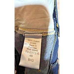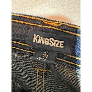 These King Size Blue denim stonewash cargo shorts in Men's waist size 46 big are perfect for a casual occasion. Made of Blue stonewash Denim with a solid pattern, these jeans feature side stretch for added comfort and flexibility. Made with typical front waist slash pockets with multiple velcro like cargo pockets and a regular fit, these classic look by KINGSIZE are a stylish and practical choice for everyday wear. look at pictures for styling and more about pocket details. They list as having about a regular price of $73.00. I couldnt see anything wrong with them but even new clothes fresh out of the package sometimes have loose threads etc