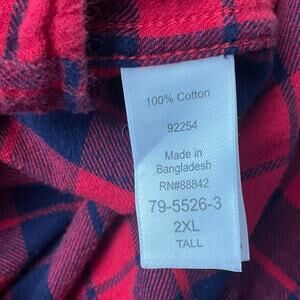 King Size Rich Burgundy Plaid Flannel Size 2XL Tall