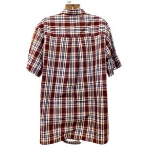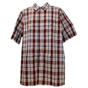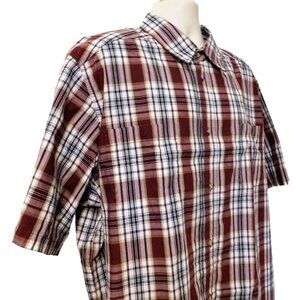 King Size Shirt Mens 2XL Maroon White Button Down Short Slv Plaid Cotton Blend