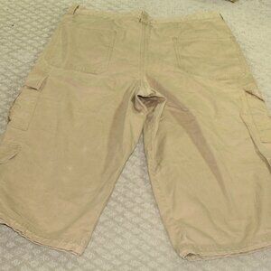 Embrace comfort and functionality with these King Size 100% Cotton Long Cargo Shorts, designed specifically for the tall and big man. In a versatile beige color, these shorts are a perfect addition to your casual or travel wardrobe. The relaxed fit and flat front design provide a classic, uncomplicated look, while the cargo style offers practicality with its ample pockets for your essentials. Crafted from premium chino fabric, these shorts are both lightweight and durable, making them an ideal choice for fall, spring, and summer seasons. A secure zip closure and a belted feature ensure a comfortable, adjustable fit, while the 38-inch waist and 21-inch inseam cater to your larger frame. Enjoy the effortless style and relaxed feel of these KINGSIZE cargo shorts.