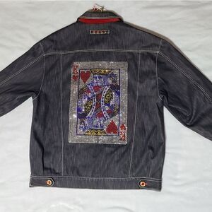 "King of Hearts", "premium 4" Unique Jeans denim jacket, bedazzled, 3XL