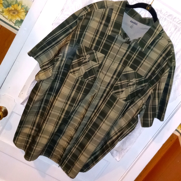 King size shirt 3XL big. From pet free smoke-free home measurements approximately 30 in armpit to armpit 32 in Long. NWOT. Hunter green / light green color. * Bin C*