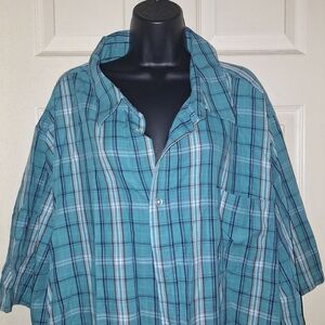 King size short sleeve plaid button-down 4XL color is more like the last photo with the name tag. pit to pit size is 34" top of shoulder to bottom hem is 36" if you have any questions please message me bundle for bigger deals Bin-75
