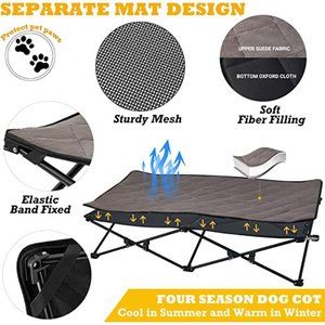 【3-IN-1 Portable Dog Bed, Easy to Install】There are 3 modes of use for this elevated pet cot: Teslin surface elevated bed, the cotton pad mat fixing on the raised dog bed, and the cotton pad mat used alone. It’s suitable for the 4 seasons, keeps your pets cool or warm. It's also portable for camping, fishing, traveling, etc.