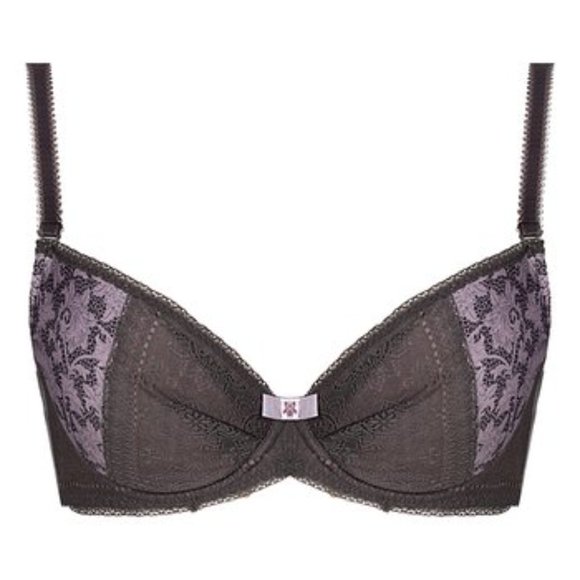 Kinga Pink & Brown Push-Up Bra. Size 32C. Adjustable & removable straps. Underwired. Push-up padding. Hook and eye closure. Made in Poland. Excellent pre-owned condition.