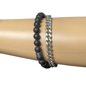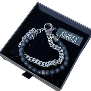 Kingka Men's Wrap-Around Bracelet with Stones, Curb Chain New in Box