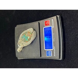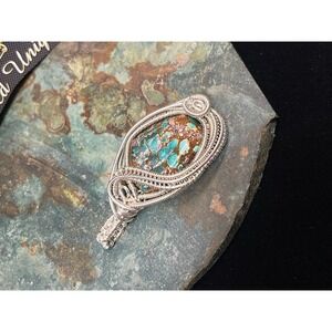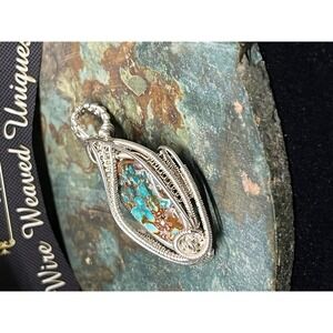 This turquoise was mined out Kingman Arizona. I wire wrapped it in sterling silver wire in an intricate way.