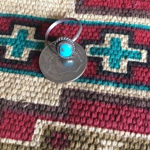 This Sterling silver Kingman AZ mined Turquoise ring features a beautiful matrix in this stone. Has a contemporary south west design making it an excellent addition to anything in our closet!