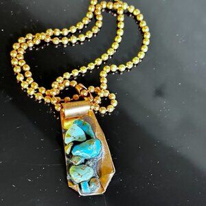 Kingman Turquoise Copper Pendant Necklace Brutalist Gift Choker 16" Handmade