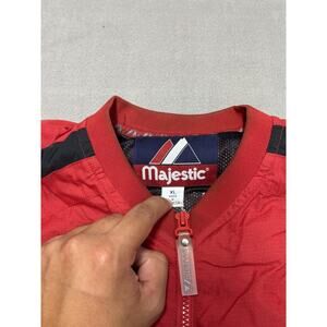 Features: Lightweight windbreaker style; mesh lining; ribbed hem and cuffs; side vent eyelets; Majestic-branded zipper pull
