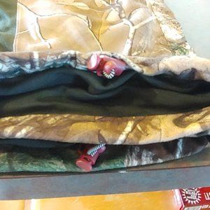 This is a NEW pair of Kings River Realtree Camouflage Cargo Pants with Scent Factor. Size is MED. Warm fleece lined with string cuff at bottom of legs. Two side slit pockets, 2 snap close side pockets and 2 snap close rear pockets. Belt loops all around. Waist is 34 inches. Inseam to leg bottom is 30 inches. Overall length is 42 inches.