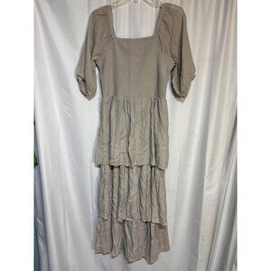 Kings Road Womens Beige Tiered Maxi Dress W/Square Neck & Puff Sleeves L