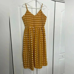 Kings Road Yellow Dress White Polka Dots Buttons Sz L